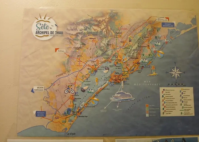 מקום זה בעיר Sète נמצא במרחק של 2.3 ק"מ על מונט סן קלייר וכ-3 ק"מ על Centre Régional d’Art Contemporain Languedoc-Roussillon. מרכז העיר זה רק 3 ק"מ משם ושדה תעופה בזיר קאפ ד'אג'דה זה 35 ק"מ משם. מגוון מסעדות כמו L'epi d'or וLe Cagou Du Pacifique נמצא תוך פחות מ-450 מטר על דירת Appart "Milodoine" Plage Ascenseur Linge Parking Wi-Fi. אטראקציות חשובות, כמו Plage de la Corniche, ממוקמות בקרבה.